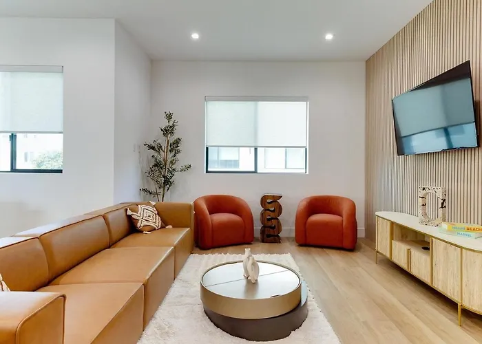 The 5-bedroom Modern Luxe Retreat Six-Bedroom Los Angeles villa offers proximity to nearby tourist spots, such as Craft Contemporary Museum, situated around 10 minutes away by car.